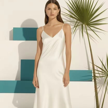 Hete Verkopende Lange Elegante Luxe Vrouwen Jurk Wit Satijn Diepe V-Hals Cami Asymmetrische Midi Jurk